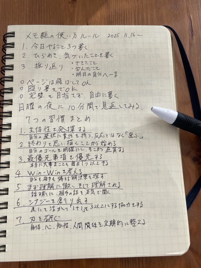 実際のメモ帳…1ページ目にルールを記載してます